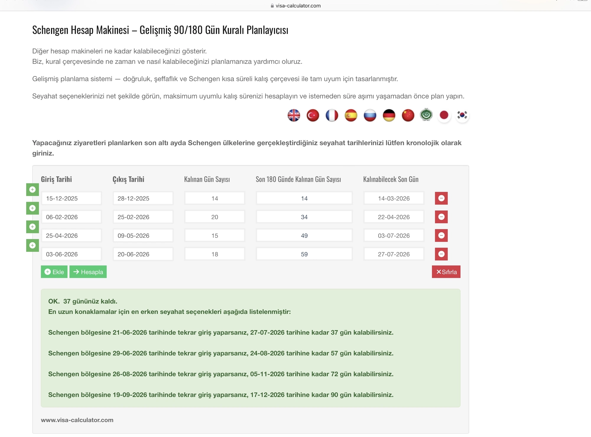 Güvenilir bir hesaplama aracı kullanarak geçmiş seyahatlerinizi analiz edebilir, farklı senaryoları test edebilir ve kalan günlerinizi kolayca görebilirsiniz.